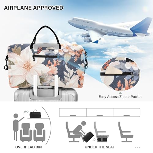 Large Travel Duffel Bag, Blooming Floral Sports Tote Gym Bag, Shoulder Weekender Overnight Bag for Women Men, Carry On Luggage with Toiletry Bags 7