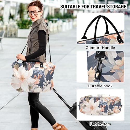 HOT ! Large Travel Duffel Bag, Blooming Floral Sports Tote Gym Bag, Shoulder Weekender Overnight Bag for Women Men, Carry On Luggage with Toiletry Bags