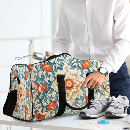 Travel Duffle Bag Orange Floral Pattern Foldable Travel Bags for Men Women, 17 Inch Gym Bag Workout Bag Carry on Weekender Overnight Bag for Gym Travel 5