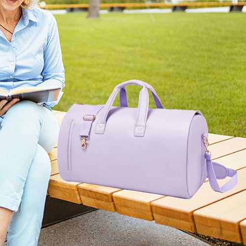 HOT ! Leather Garment Bag Women, Carry on Garment Bag for Travel Convertible Garment Duffel Bag 2 in 1 Waterproof Foldable Travel Suit Bag Weekender Bag with Shoe Pouch