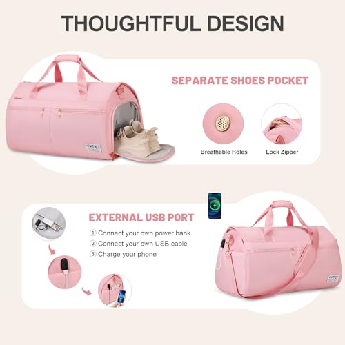 HOT ! Convertible Travel Garment Bag with Backpack Strap, 3 in 1 Carry on Garment Duffle Bag, Garment Bags for Travel with Shoe Compartment USB Charging Port, Hanging Dress Suit Travel Bag for Women