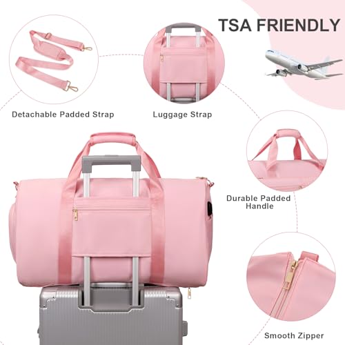 • WET BAG & SHOES POCKET - The internal wet and dry separator bag is made of high-density waterproof material, which can help you separate wet and dry items. If you have wet clothes or towels, you can put them into the wet bag. This women's duffel bag has a separate compartment on the right side for 1-2 pairs of shoes. Our garment duffel bag for women is the perfect reliable companion for indoor and outdoor activities, great for workouts, yoga, tennis, swimming, camping and many outdoor activities