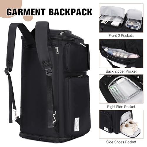 Garment Bags for Travel, 2 in 1 Convertible Carry On Duffle Bag Suit Bags Foldable Backpacks with Shoe Compartment & Toiletry Bag, Hanging Bags for Clothes Dress Suit for Men Women Gift (Black) 4