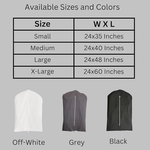 • ✔ Multiple Sizes Available: Choose from three versatile sizes: Medium (24"x40"), Large (24"x48"), and X-Large (24"x60") to fit various types of clothing, from formal suits to long dresses.
