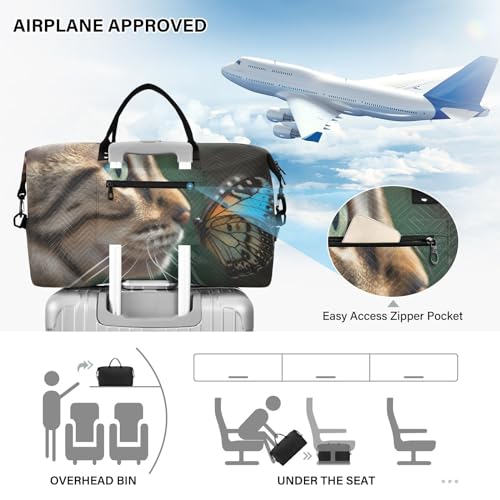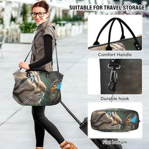 HOT ! Large Travel Duffel Bag, Butterfly and Kitten Sports Tote Gym Bag, Shoulder Weekender Overnight Bag for Women Men, Carry On Luggage with Toiletry Bags