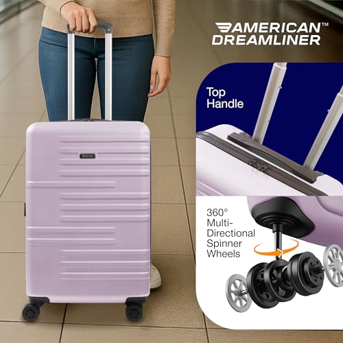 • TRAVEL WITH CONFIDENCE: Get to your destination with style and confidence with our American Dreamliner Travel Sets! Our 22.5, 26.5 and 30 inch hardside suitcase set features a sleek purple finish and provides a great combination of style and functionality whether you are on a business trip or on vacation; hard sided luggage meets most TSA airline requirements for carry-on luggage and fits into most overhead bins, the medium and large suitcases are intended as checked baggage for airlines