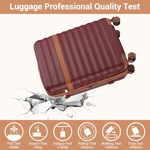 Kono Luggage Set 3 Pieces Expandable PC ABS Durable Suitcase Hardside with Double Spinner Wheels Tsa Lock Burgundy(20in/24in/28in) 7