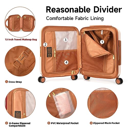 • VINTAGE STYLE 2 PIECE HARDSIDE LUGGAGE SETS : 20 inch carry on luggage and 13 inch travel makeup bag.