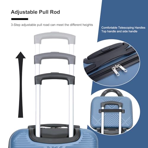 4-Piece Abs Lightweight Suitcase Set, Includes 14 Inch Makeup Box, Smooth-Rolling Spinner Wheels (14/20/24/28) Blue 7