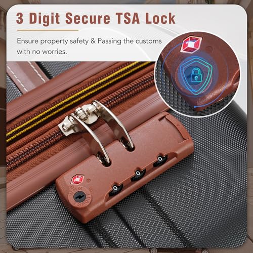 Hardshell Luggage Sets 3 Pieces 20"+28" Luggages and Cosmetic Case Spinner Suitcase with TSA Lock Lightweight,Black 5