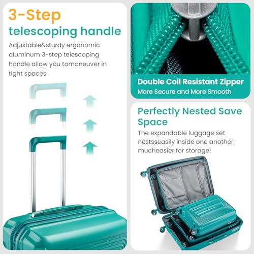 4 Piece Luggage Sets with Spinner Wheels, Hardshell Suitcase Set & Hardside Luggage Set with TSA Lock, Lightweight Luggage Sets & Expandable Luggage Set with Telescoping Handle (Green) 7