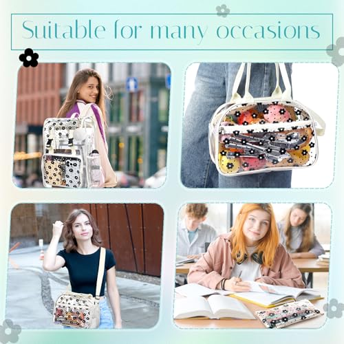 3pcs Clear Backpack Heavy Duty See Through Bookbag with Lunch Bag Pencil Case Key Chain for Women Stadium Approved(Daisy) 4