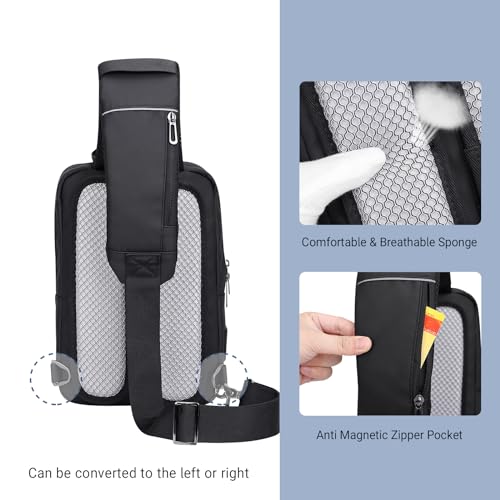 • Large Capacity: The Chest bag has two large compartments, compact and spacious, which can hold essential items for travel. Front zipper pocket has two zipper pocket, and two main compartment, 2 open pockets and 3 pen pockets can keep your items tidy and organized. The interior of the main compartment is spacious, with two open pockets and a mesh bag, as well as a sponge filled pocket for accommodating 7.9-11 inch iPads.