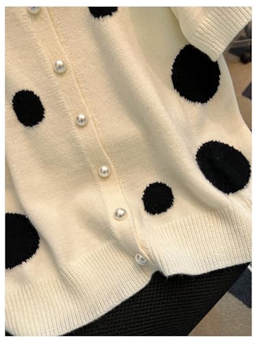 WDIRARA Women's Polka Dots Pearl Button Down Cardigan Sweater Crew Neck Short Sleeve Knit Top 5