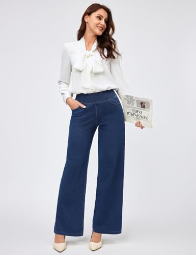 • High Waisted & Pull On: These pull on jeans for women streamline your morning routine with effortless slip-on convenience—no zippers or buttons required. The double-layered sculpting waistband with integrated 2cm elastic core provides tummy control while maintaining cloud-like softness. These wide leg jeans have all the style of classic jeans but none of the hassle - the perfect blend of fashion and function.
