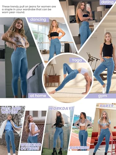 • [YOUR EVERDAY JEGGING/ANYTIME & ANYWHERE] High V Cross-Waist Jeans and Leggings for women with pockets are suitable for yoga, running, dancing, sports, fitness, any type of workout, camping, travel, beach, casual, street, or daily use; From Work to Weekend, Always On Point; Your go-to jeans for any occasion—dress them up or down for errands, workdays, brunch dates, or nights out; These jeans for women trendy are effortlessly chic and always comfy; Suitable for all seasons and any scene