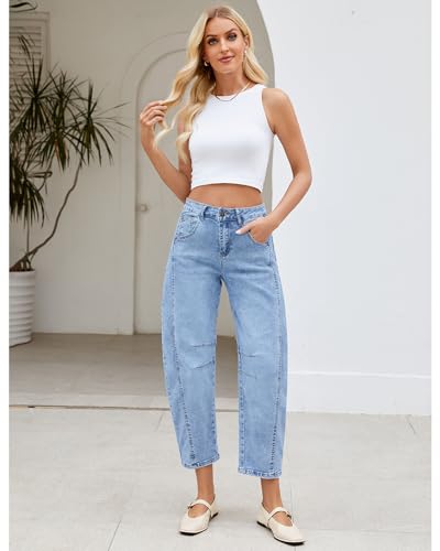 LookbookStore Barrel Jeans for Women High Waisted Cropped Wide Leg Trendy Baggy Distressed Stretchy Denim Jean Pants 5