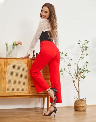 More information about Women’s Wide Leg Petite Jeans High Waisted Stretchy Cropped Flare Jeans with Patch Pockets