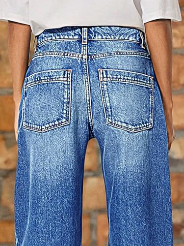 Flamingals Baggy Jeans for Women Mid Rise Straight Leg Stretchy Wash Casual Boyfriend Jeans Trendy 4