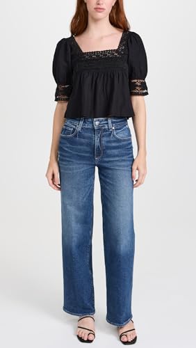 • Runs true to size, Designed with a high rise and a wide leg. Low-stretch denim has a mid-weight feel.