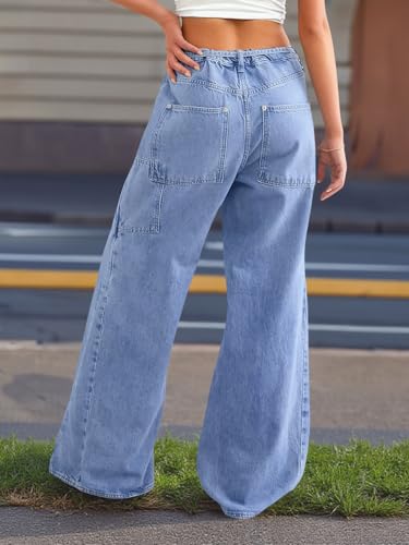 Cicy Bell Womens Wide Leg Jeans Vintage Mid Rise Baggy Boyfriend Belted Denim Pants with Pockets 5