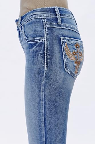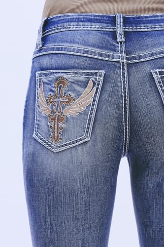 BlueMoment Bootcut Jeans for Curvy Women Western Cowgirls Stretchy Butts Lifting Jeans Retro Mid Low Rise Ladies Denim Jean 7