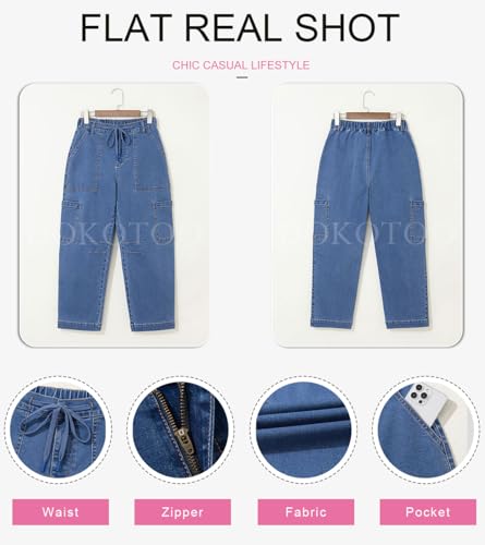 Dokotoo Jeans for Women Casual High Waisted Straight Wide Leg Pants Loose Cargo Denim Pants with Pockets 6