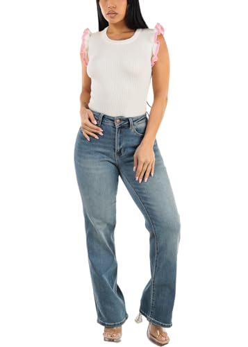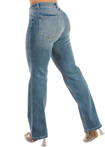 Moda Xpress Womens Juniors High Waisted Stretchy Straight Wide Leg Flared Jeans for Women 6
