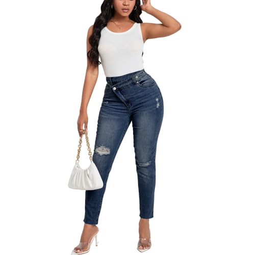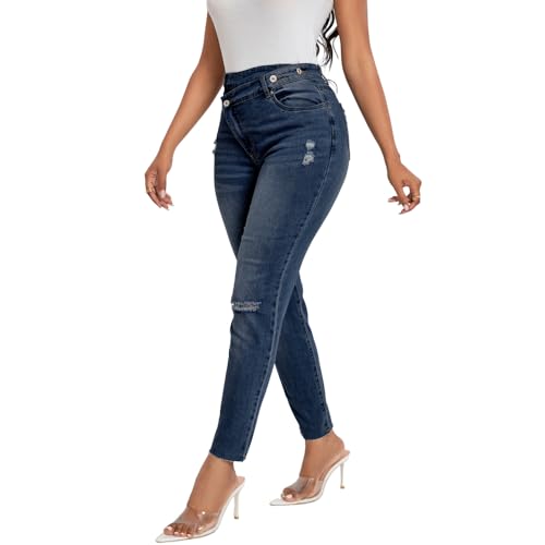 • Features:Boyfriend Jeans For Women,Crossover Waist,Asymmetrical Buckle Design,Zipper Fly And Three Button Closure,Mid Rise Jeans,Classic 5 Pockets,Distressed Ripped,Folded Hemline,Which Is Unique And Individual,Makes You Look More Fashion.