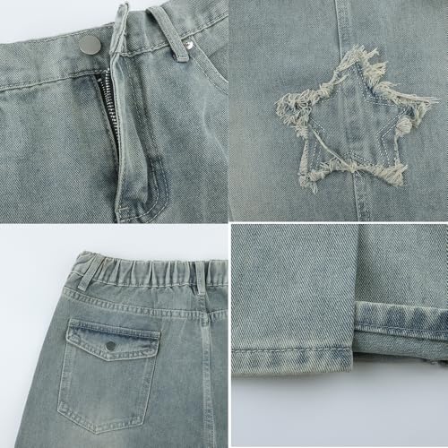 AULKEEP Womens Star Print Gradient Jeans Loose Ripped Graphic Pants Punk High Waist Bottom Jeans with Pocket 5