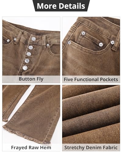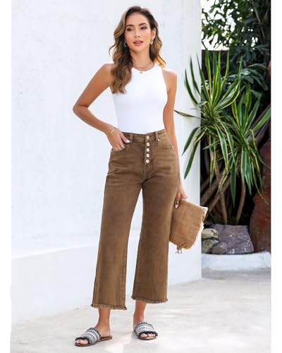 GRAPENT Capri Jeans for Women Trendy High Waisted Wide Leg Flare Button Fly Stretchy Denim Pants Raw Hem Cropped Jeans 6
