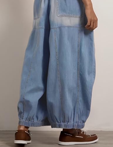 HOT ! Hooever Women's Wide Leg Jeans Baggy Boyfriend Elastic Hem Denim Pants with Drawstring Waist
