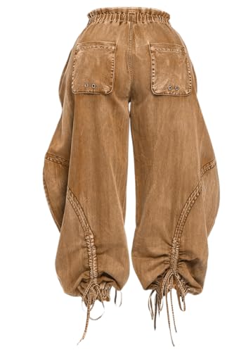 Molisry Women's Drawstring Wide Leg Jeans High Wasited Y2K Harem Baggy Pants Denim Casual Streetwear 4