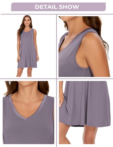 GYS Womens Bamboo-Derived Viscose Nightgowns Soft Sleeveless V Neck Nightdress Lightweight Sleep Shirt S-4XP 5