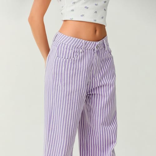 HOT ! Mxiqqpltky Y2k Striped Bell Bottom Jeans Women High Waisted Boyfriend Denim Pants Baggy Wide Leg Stretchy Bootcut Flare Jeans