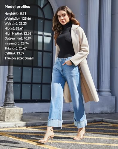 More information about Womens Wide Leg Jeans High Waisted Stretchy Cuffed Baggy Denim Pants