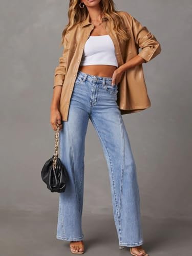 More information about Women's Wide Leg Jeans High Waisted Stretchy Denim Pants 2025 Casual Loose Baggy Long Seamed Trousers with Pockets