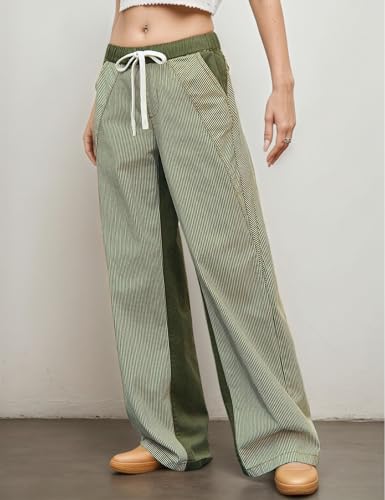 More information about Womens Low Rise Wide Leg Striped Pants Jeans Boho Striped Drawstring Patchwork Denim Pants Trendy 2025