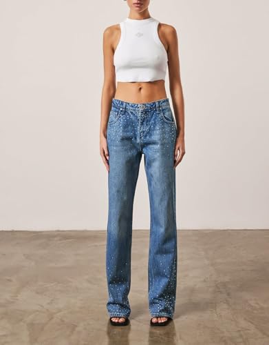 • Features: Womens bedazzled jeans features wide leg, high waisted, loose fit, zipper and basic five pockets design. Longer leg length than usual, great match with high heels