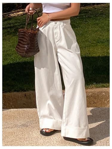 More information about OYOANGLE Women's Denim Wide Leg Straight Jeans Y2K Solid Baggy Loose Mid-Rise Pocket Casual Pants