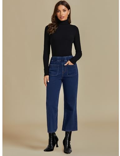 HOT ! luvamia Wide Leg Jeans for Women Pull On Trendy High Waisted Cropped Jeans Denim Pants Stretchy Baggy with Patch Pockets