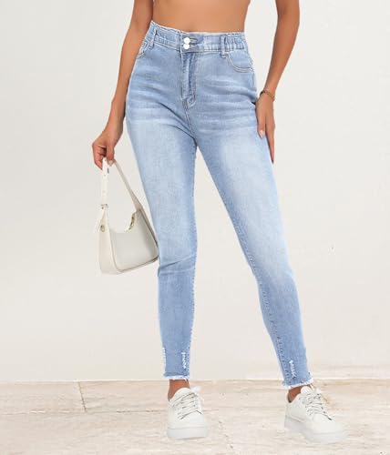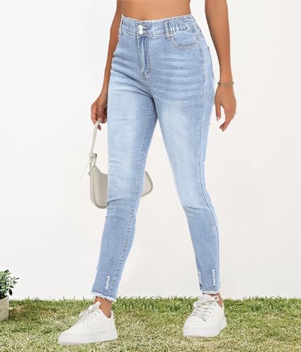 HugeNice Women's Mid-Rise Stretch Skinny Jeans Casual Slim Fit Elastic Waist Denim Pants 6