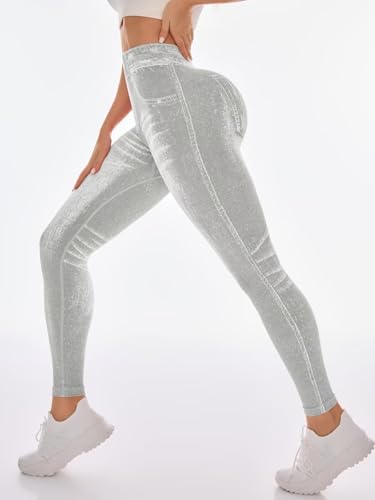 V Back Faux Denim Jeggings for Women Butt Lifting Tummy Control High Waisted Jeans Yoga Pants Scrunch Leggings 4