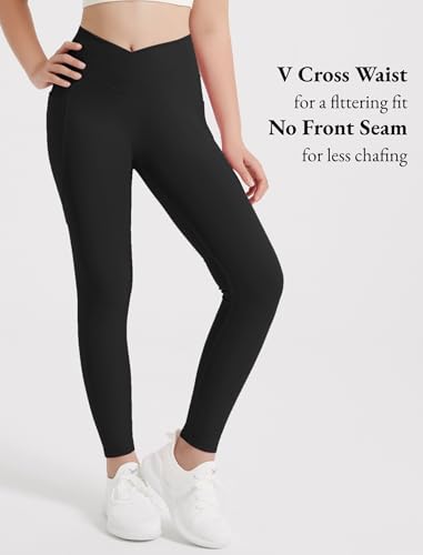 HOT ! EXARUS 4 Pack Girls Leggings Kids Yoga Pants Crossover V Waist Ankle/Full Length High Waisted for School Casual Dance
