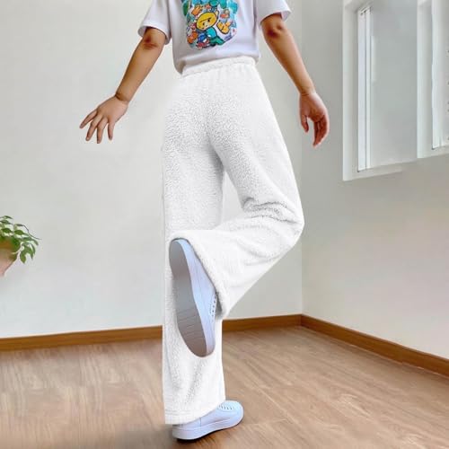 HOT ! Unisex Kids Fuzzy Fleece Pants Wide Leg Soft Cozy Fluffy Casual Pants Elastic Waist Winter Warm Plush Sweatpants
