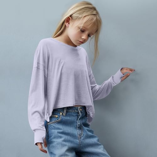 • Feature: The open back shirts for girls is trendy and comfy, perfect for daily wear. This athletic tops features a relaxed fit, a timeless round neckline, slight crop,as well as open-cut back and ribbed wrist detail, all of which contribute to an elegant and cute look.