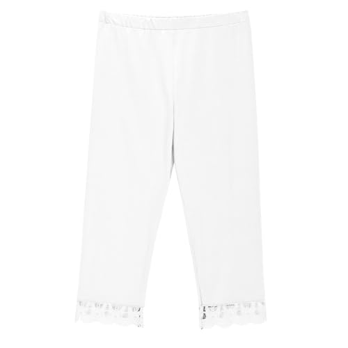 Girls 3/4 Lace Trim Leggings Elastic High Waisted Yoga Pants Stretchy Slim Lightweight Tights Solid 6