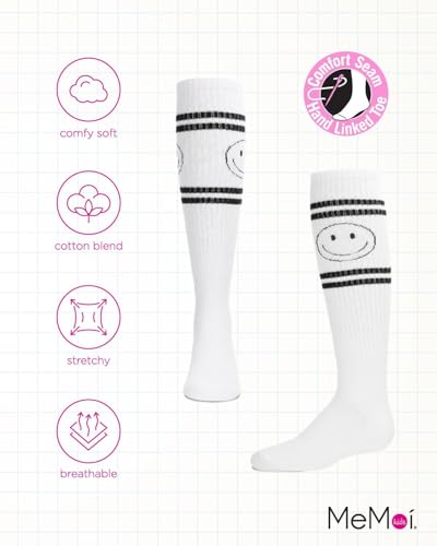 MeMoi Girls' Athletic Smiley Cotton Blend Knee High Socks 7