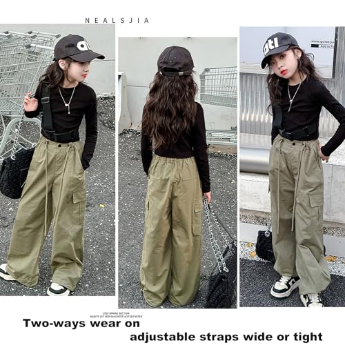 Girls Parachute Pants Y2K Cargo Baggy Joggers Track Pants Kids Trousers with Pockets 6-14 Years 2