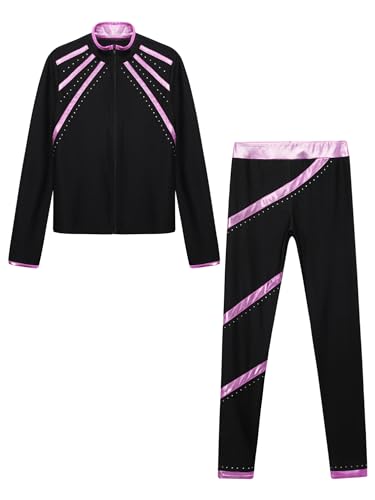 TiaoBug Kids Girls Figure Skating Outfits Roller Ice Skating Practice Training Suit Spiral Jacket Pants Tracksuit Set 1